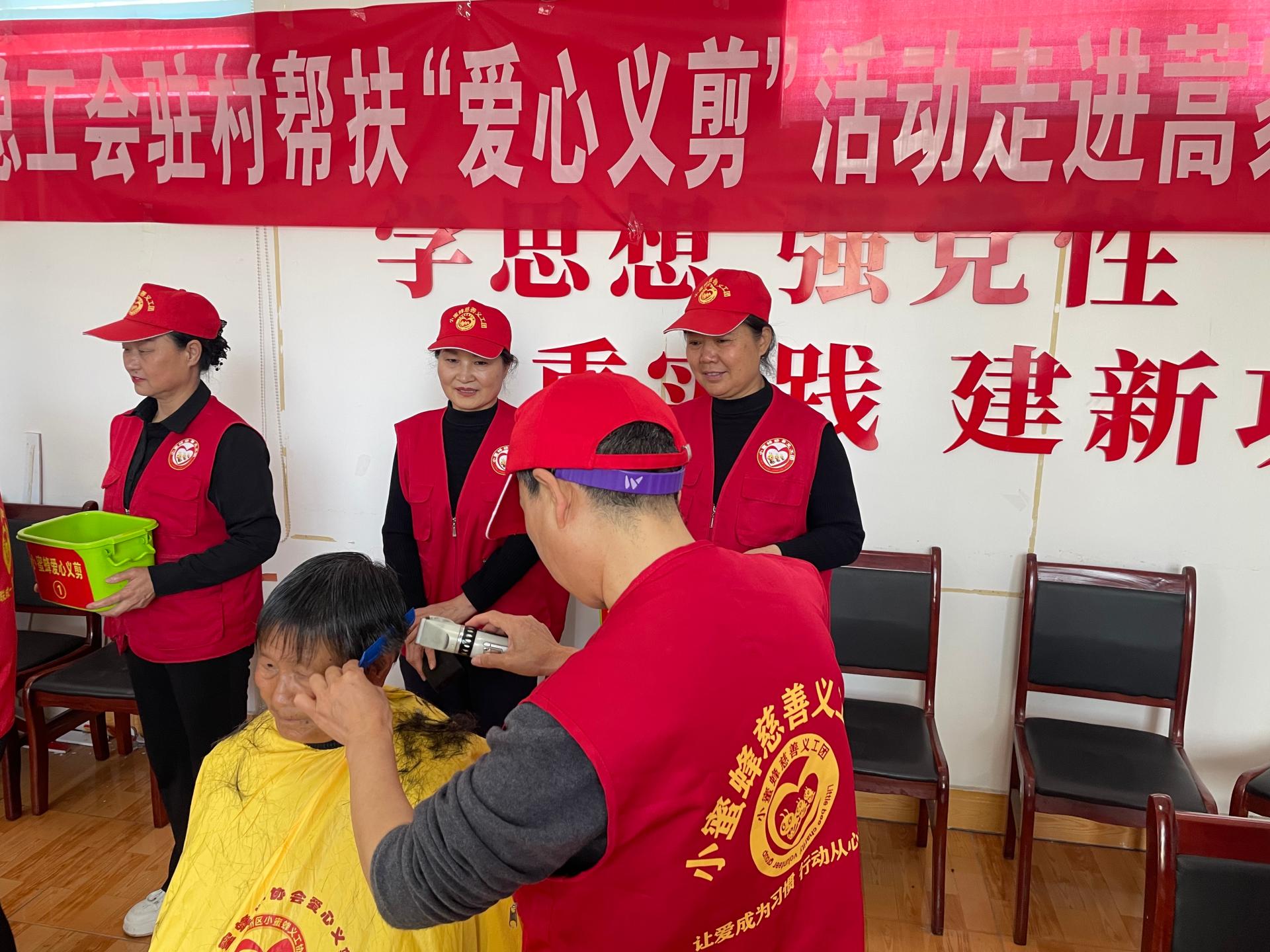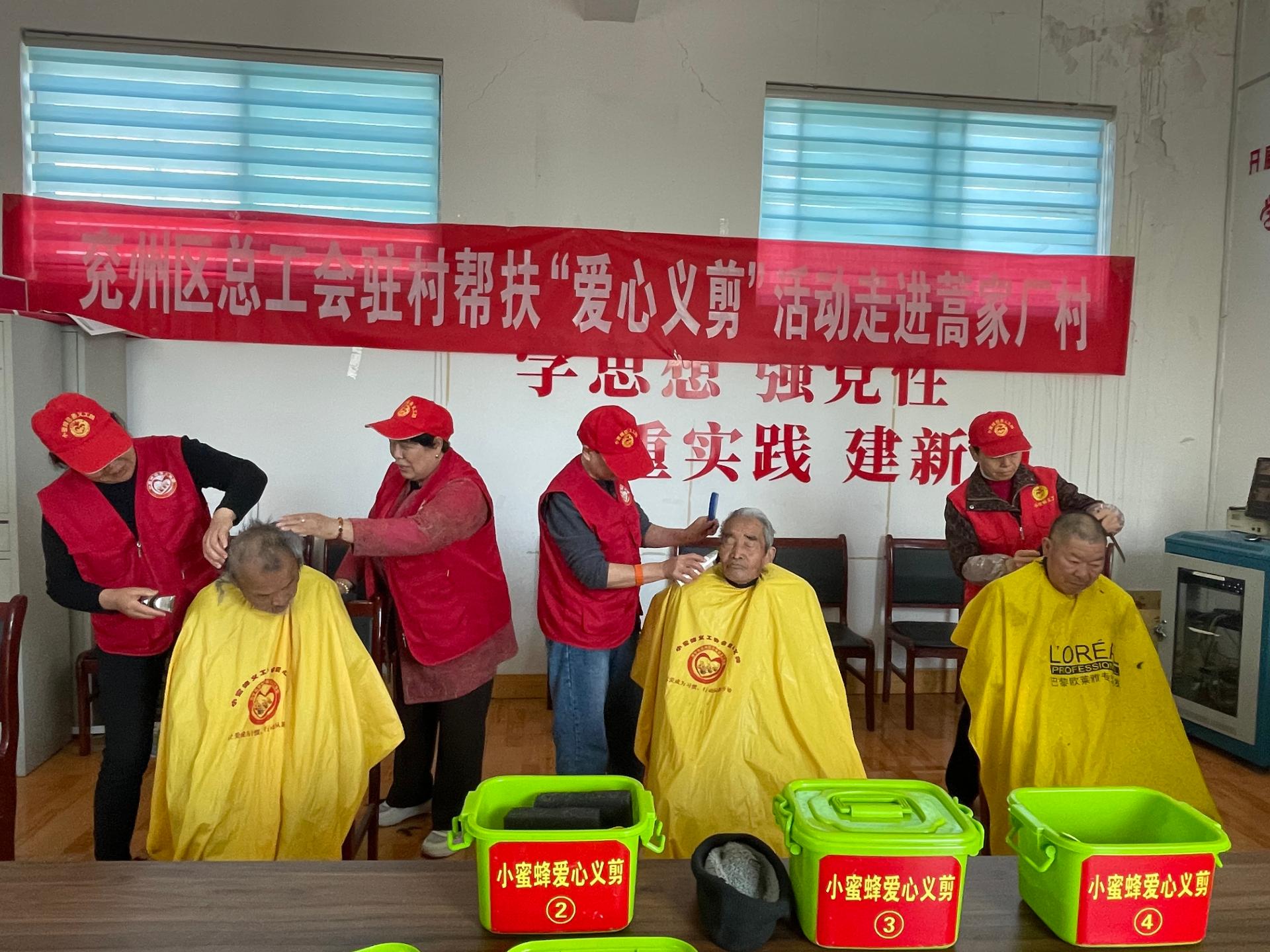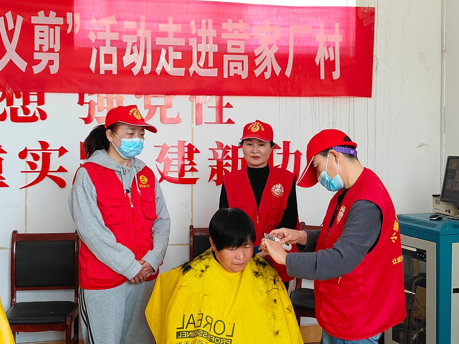 兖州区小蜜蜂义工协会走进济宁市兖州区蒿家厂村义剪活功,为60岁老人,儿童,残疾人,退伍军人免费爱心义剪。