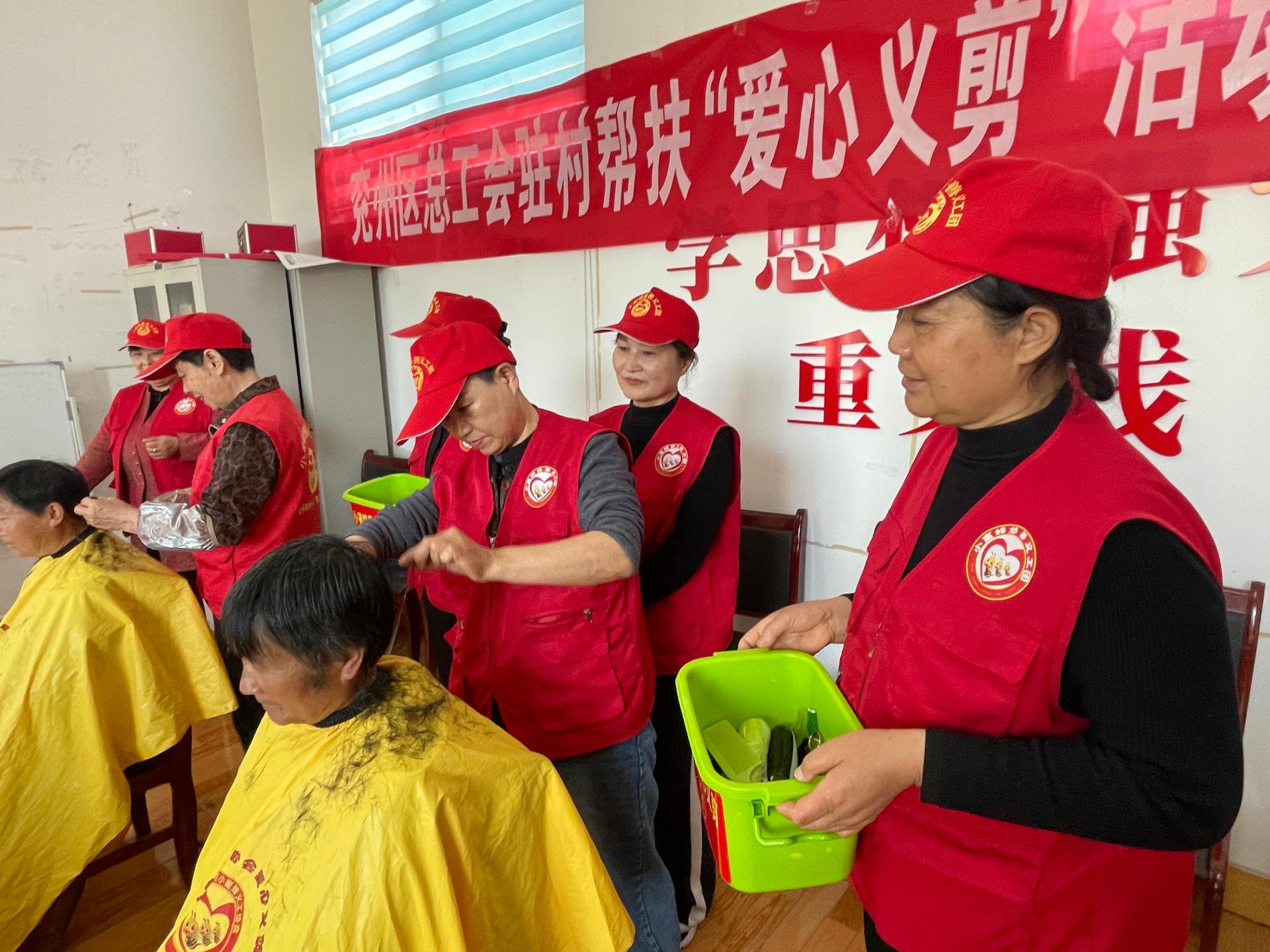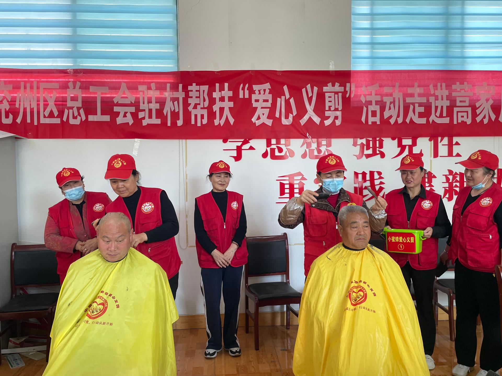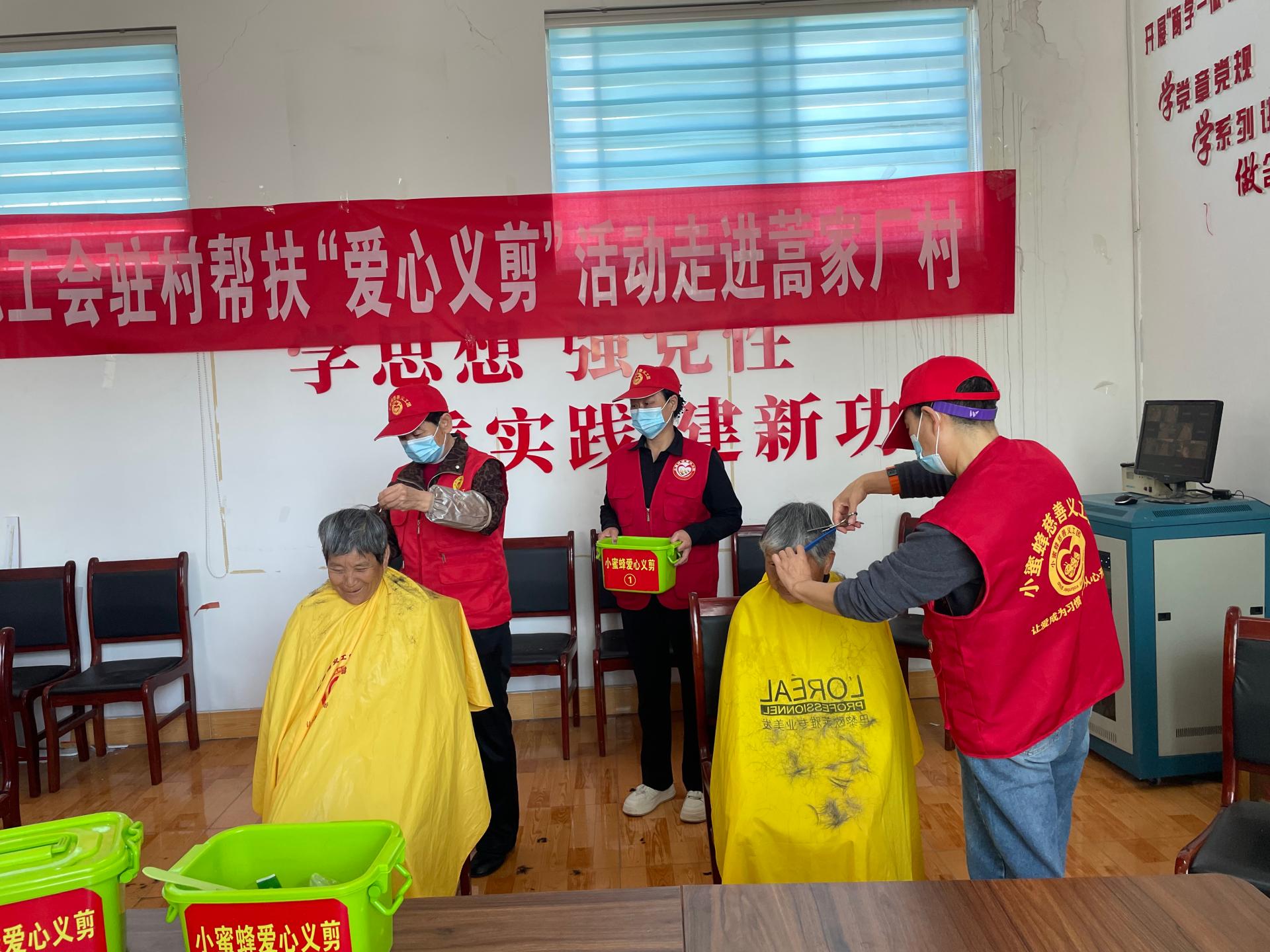 兖州区小蜜蜂义工协会走进济宁市兖州区蒿家厂村义剪活功,为60岁老人,儿童,残疾人,退伍军人免费爱心义剪。