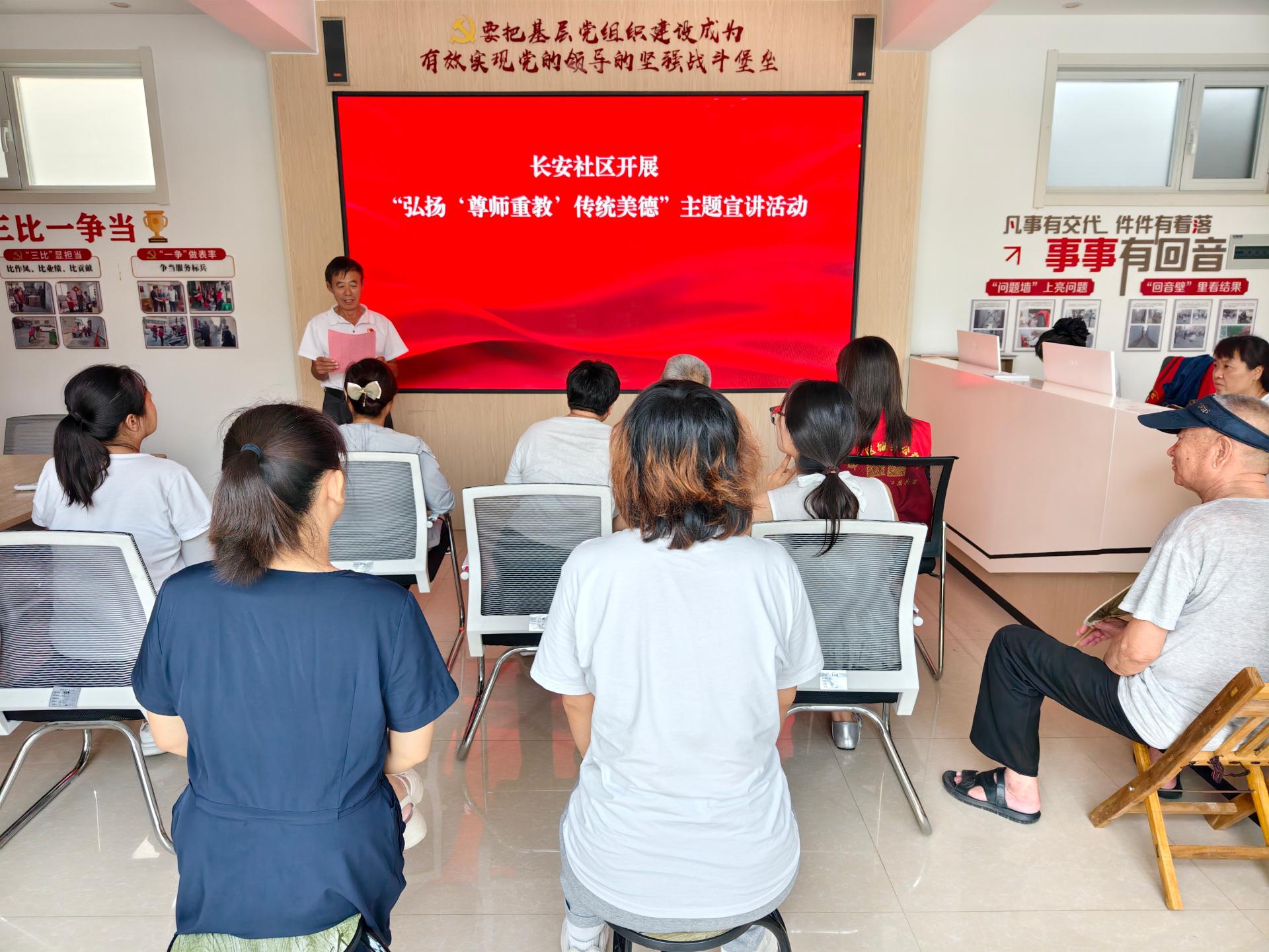 今年9月10日是我国第41个教师节,为传承尊师重教的优良传统,将传统美德发扬光大,长安社区组织开展“弘扬‘尊师重教’传统美德”主题宣讲活动。