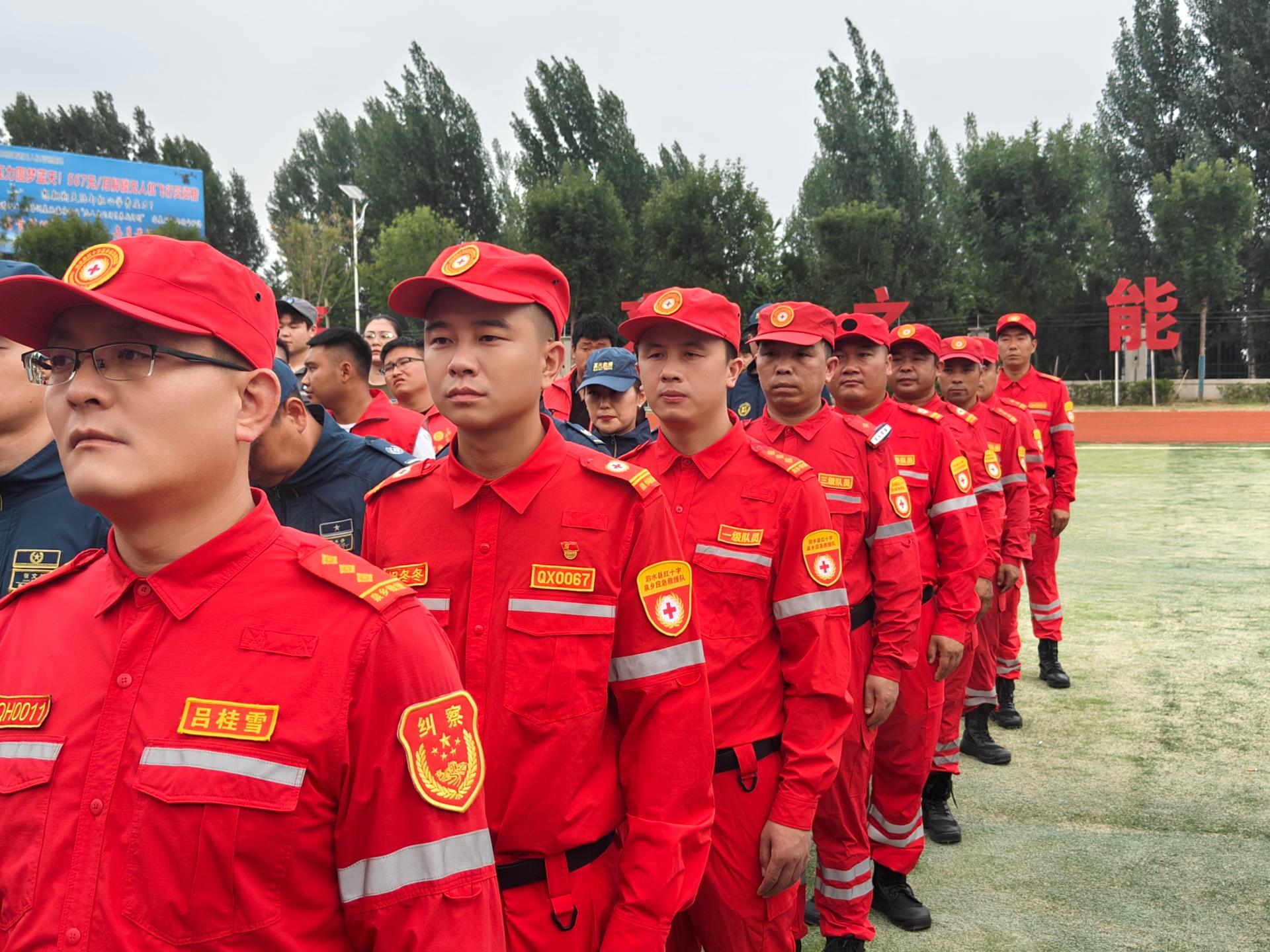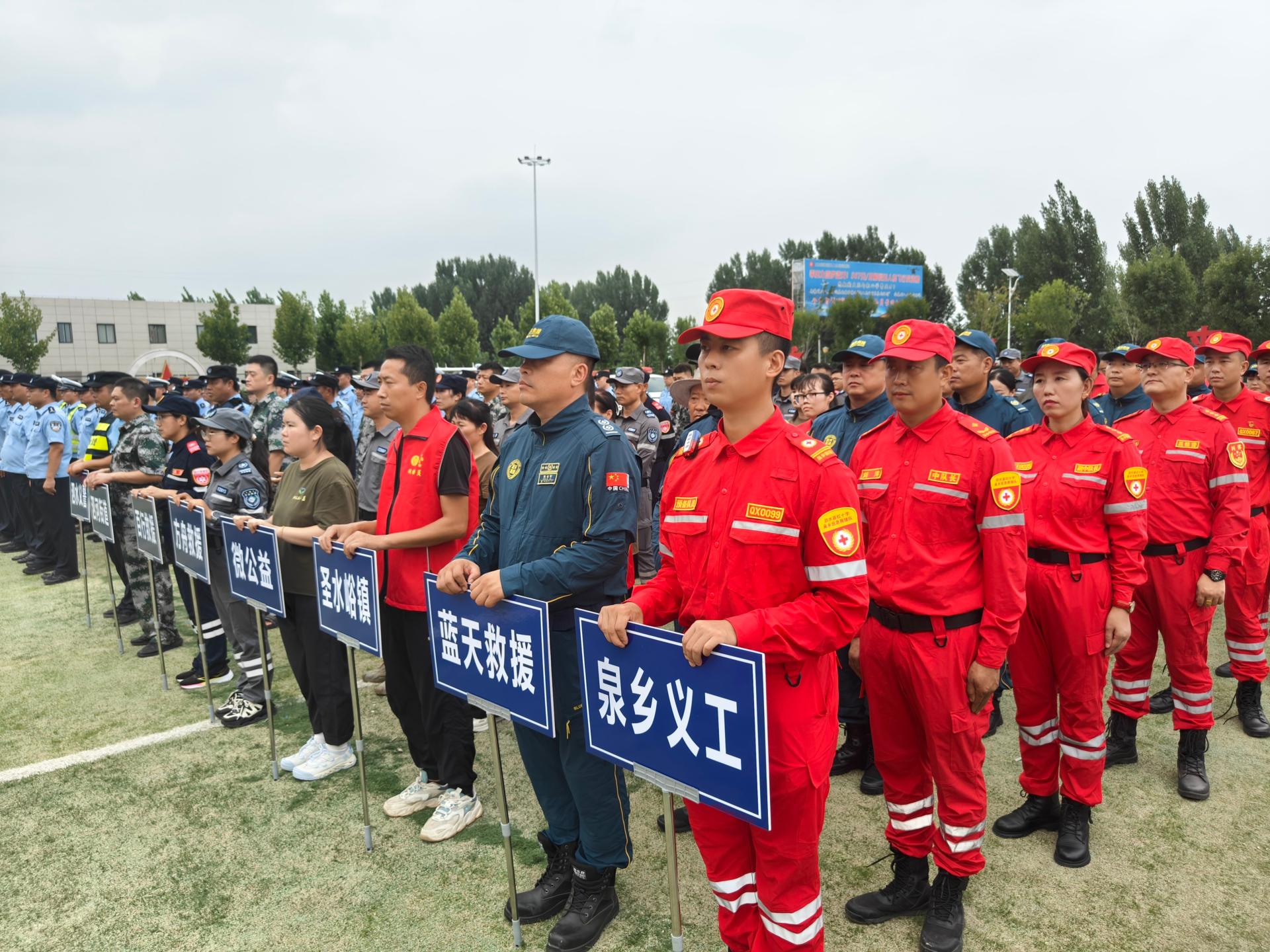 ​8月27日星期三,泗水县红十字泉乡应急救援队联合泉乡义工协会志愿者走进泗水县公安局举行全县防爆民兵启动仪式开展志愿服务活动。
