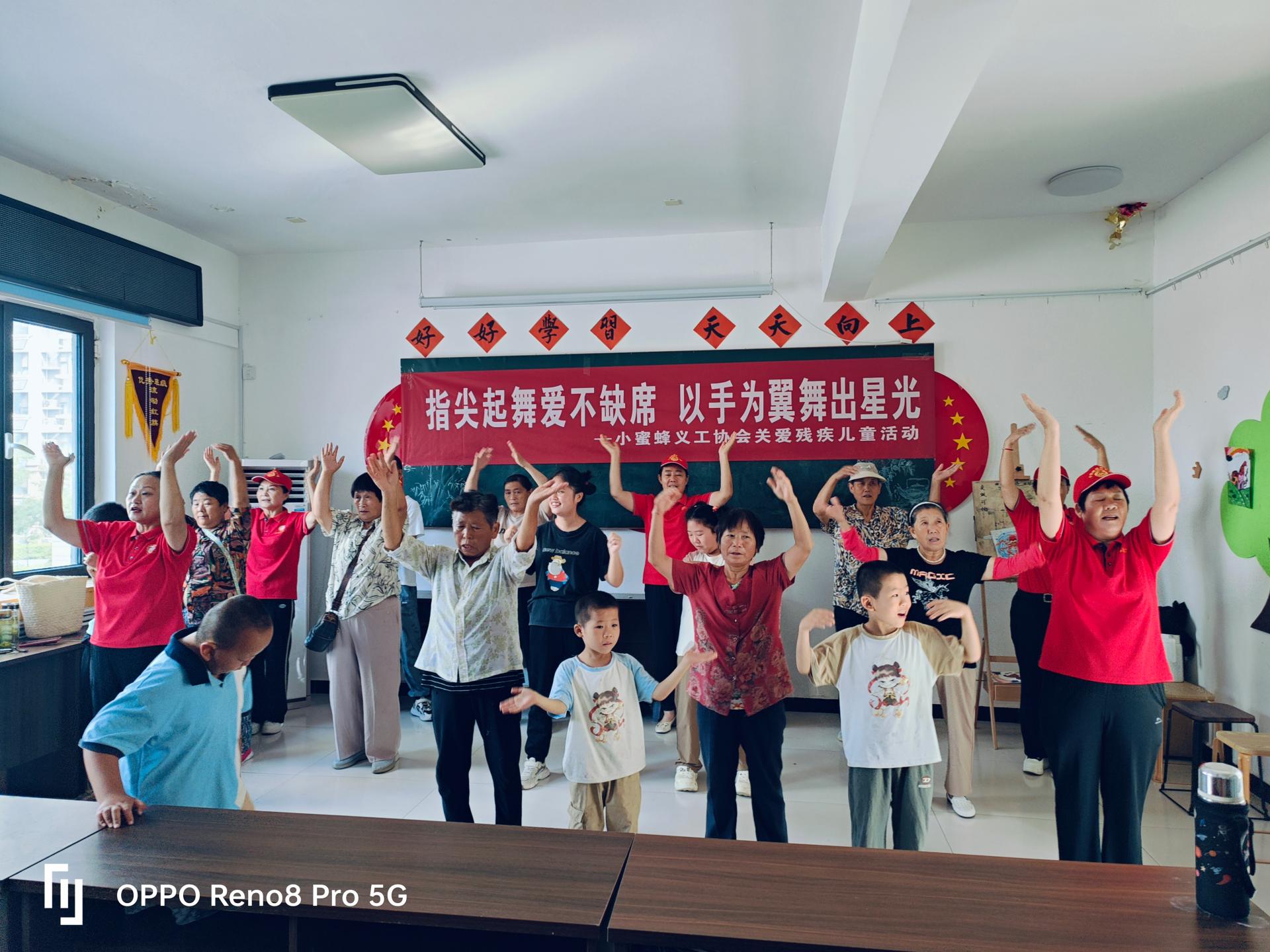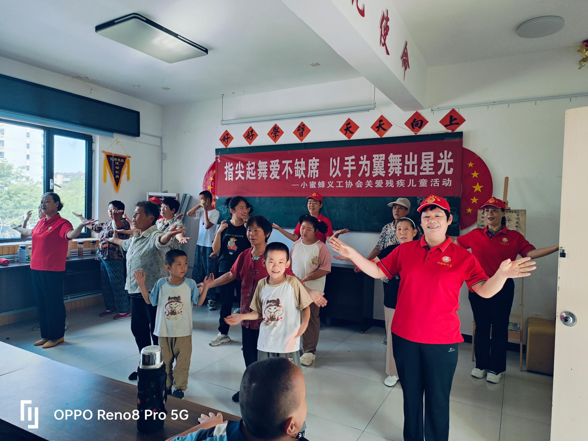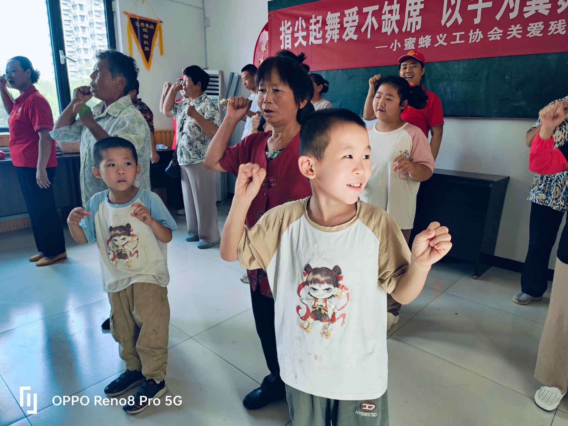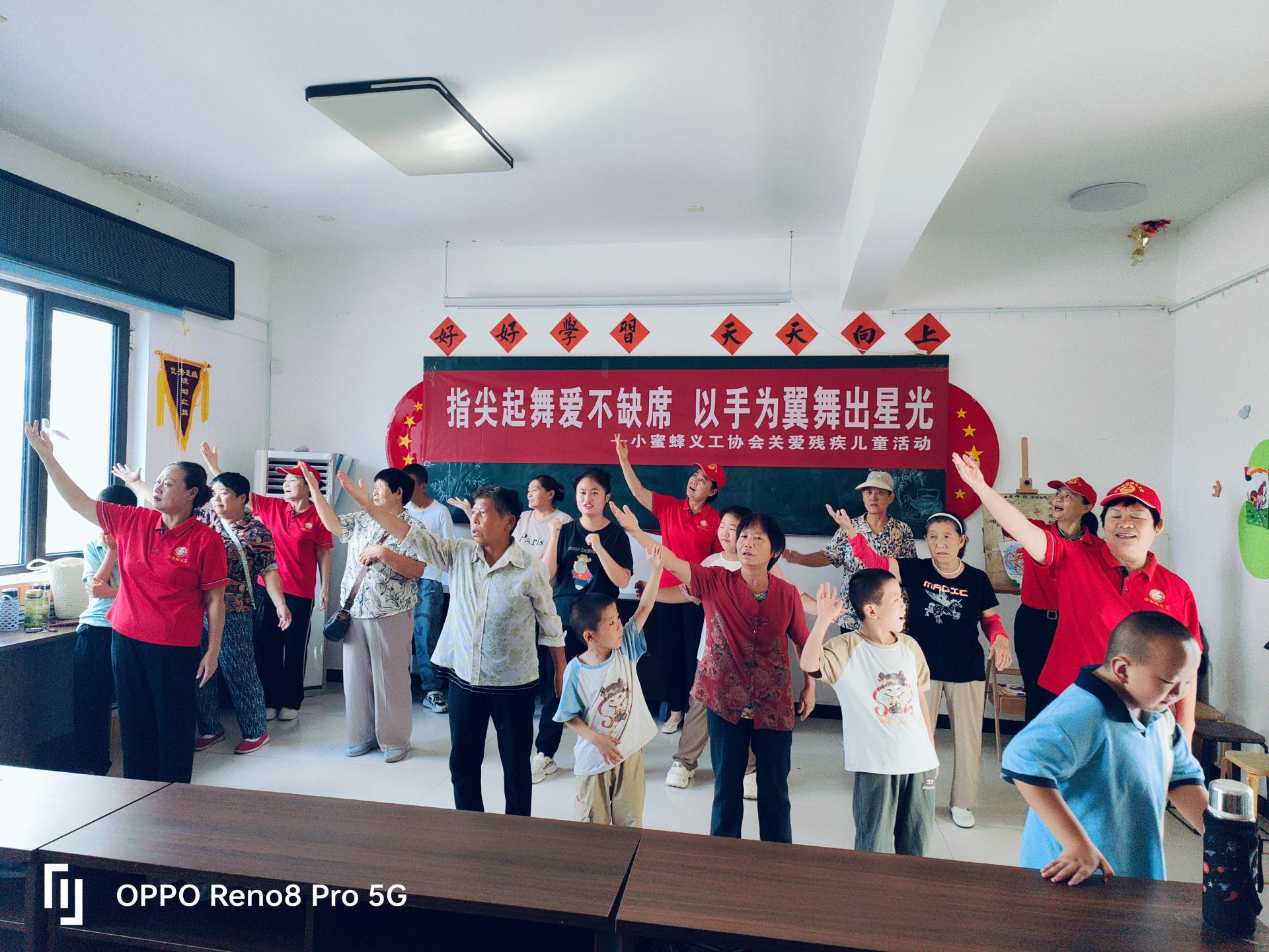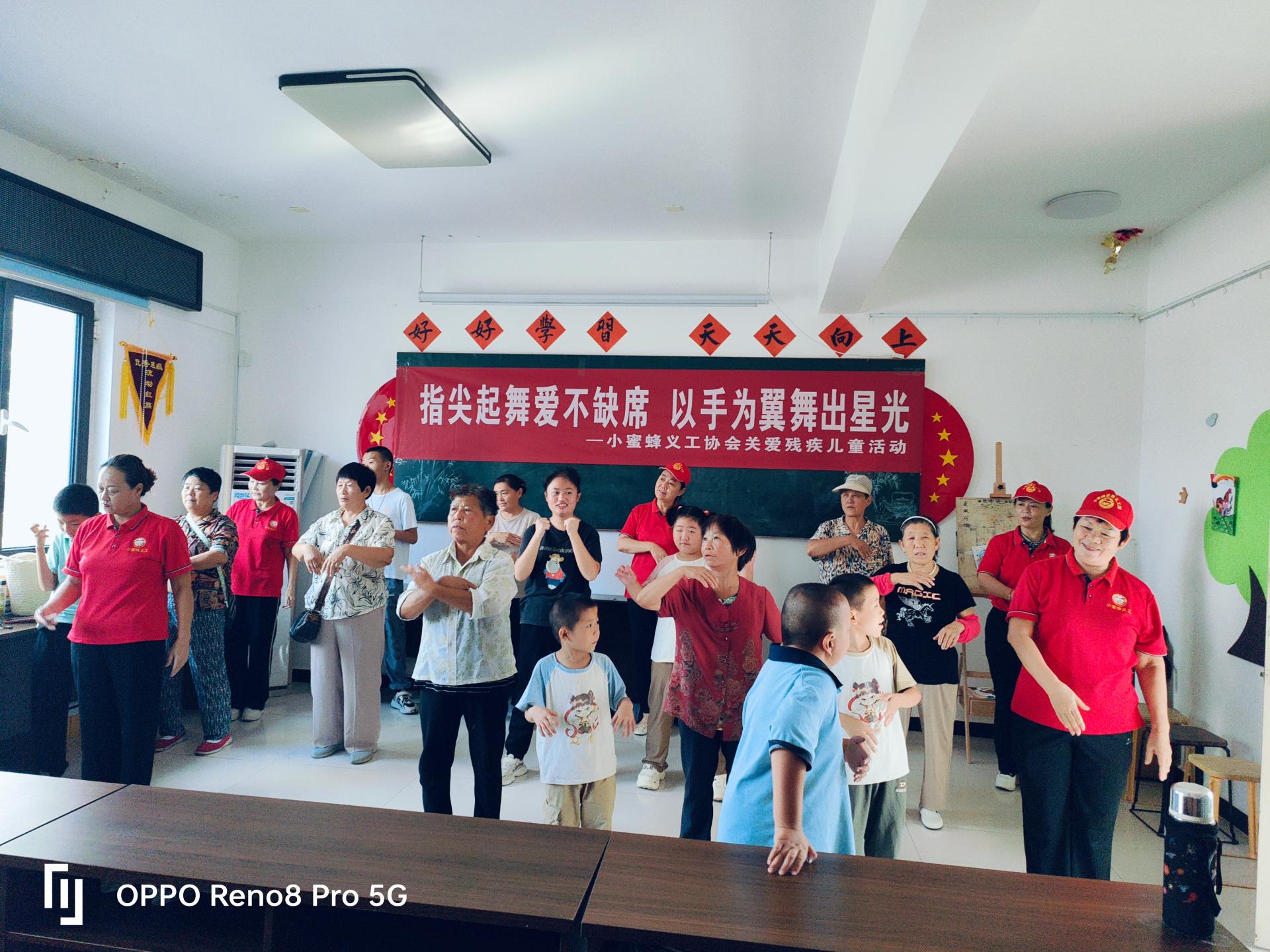 兖州区小蜜蜂义工协会定点定时开展每周一次关爱残疾儿童活动,这次活动是教残疾儿童手语舞,帮助残疾孩子快速的融入社会