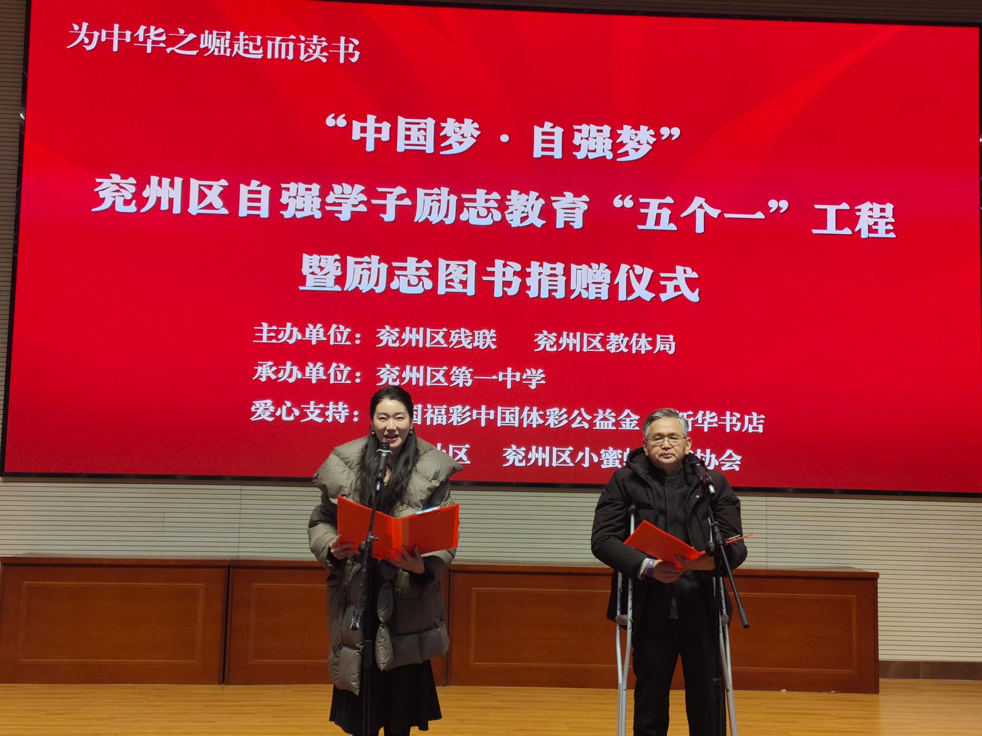 以后就去小蜜蜂一共协会参加兖州一中举办的励志学生 中国梦,自强梦。兖州区志昌学子励志教育。5个一激励。图书捐赠仪式