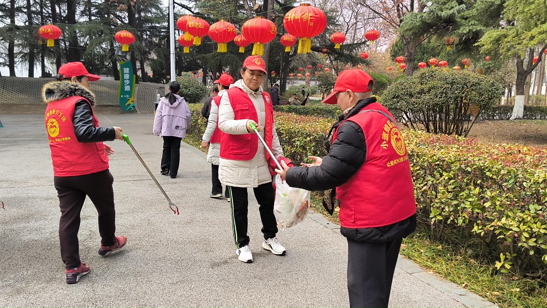 兖州区小蜜蜂义工协会在少陵公园捡跑活动,小蜜蜂义工队员,中慢跑并没途清理垃圾,传道环保理念,欢乐无限,为爱弯腰,益起捡跑!
