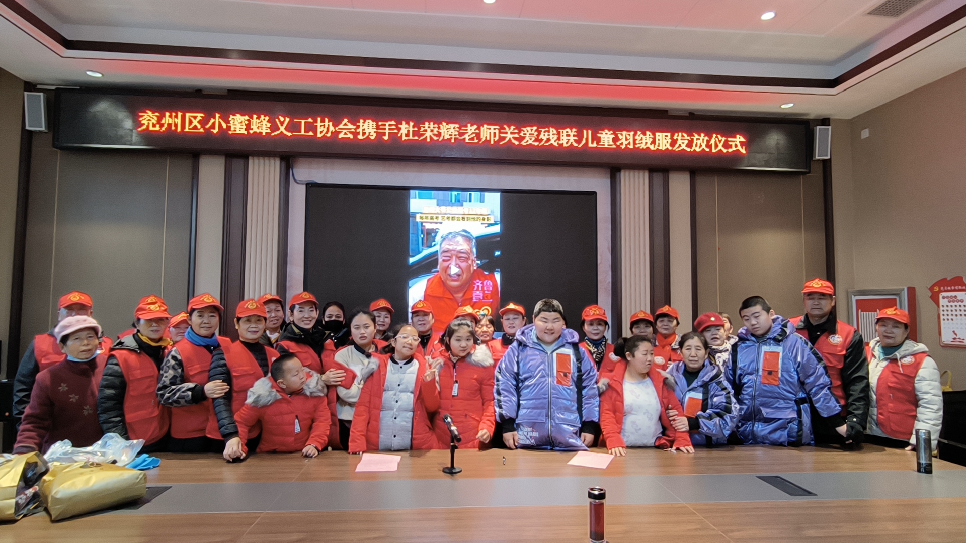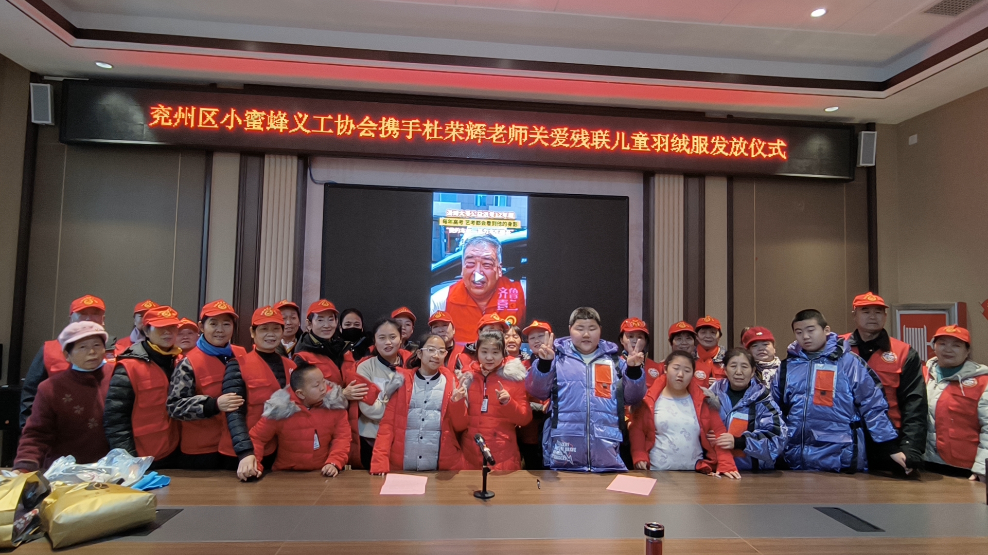 兖州区小蜜蜂义工协会为残疾儿童羽绒服活动
