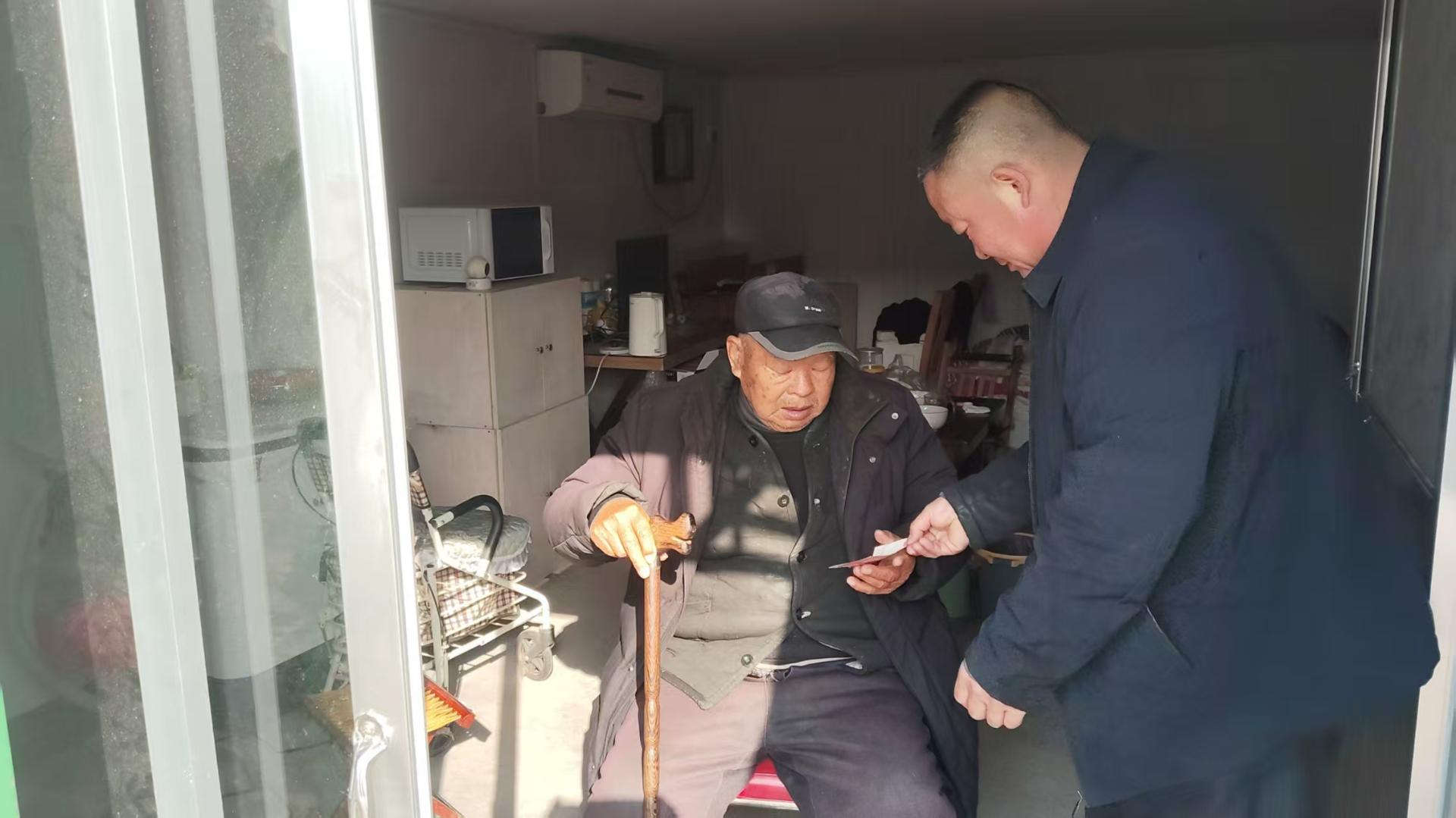 活动中,村委领导到独居老人家中走访慰问,帮助他们打扫卫生,亲切地与老人交谈,询问老人的身体状况和生活需求。并叮嘱老人注意保暖,保重身体