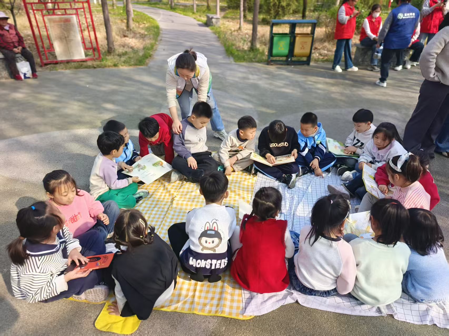 春风送暖,草木含香,在这充满生机与诗意的日子里,奎星楼社区新时代文明实践站联合西哈兔托育园开展户外阅读活动。