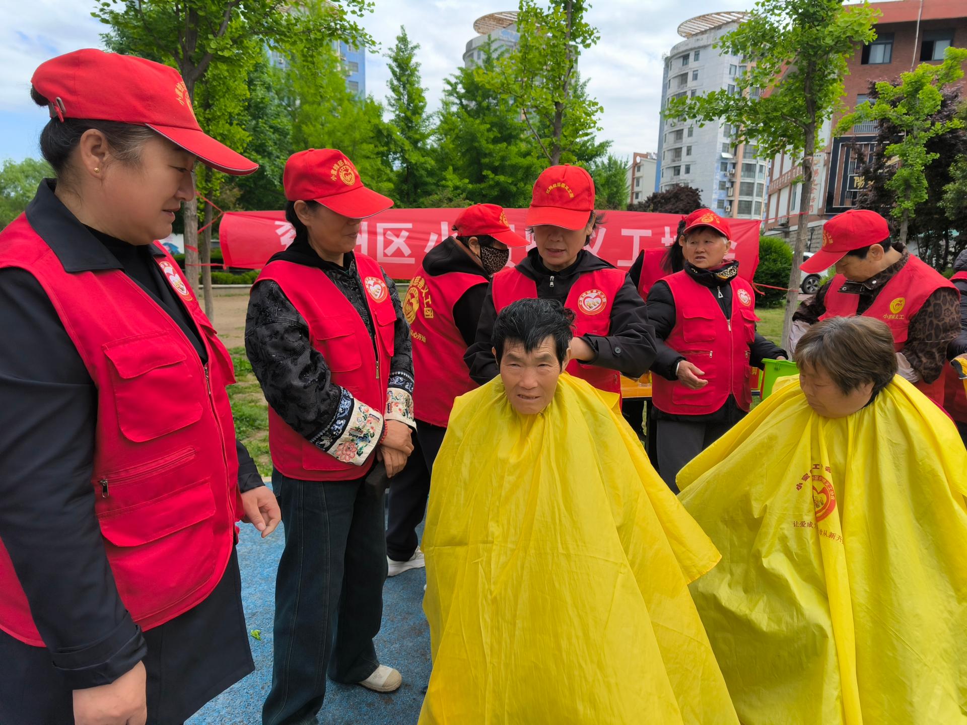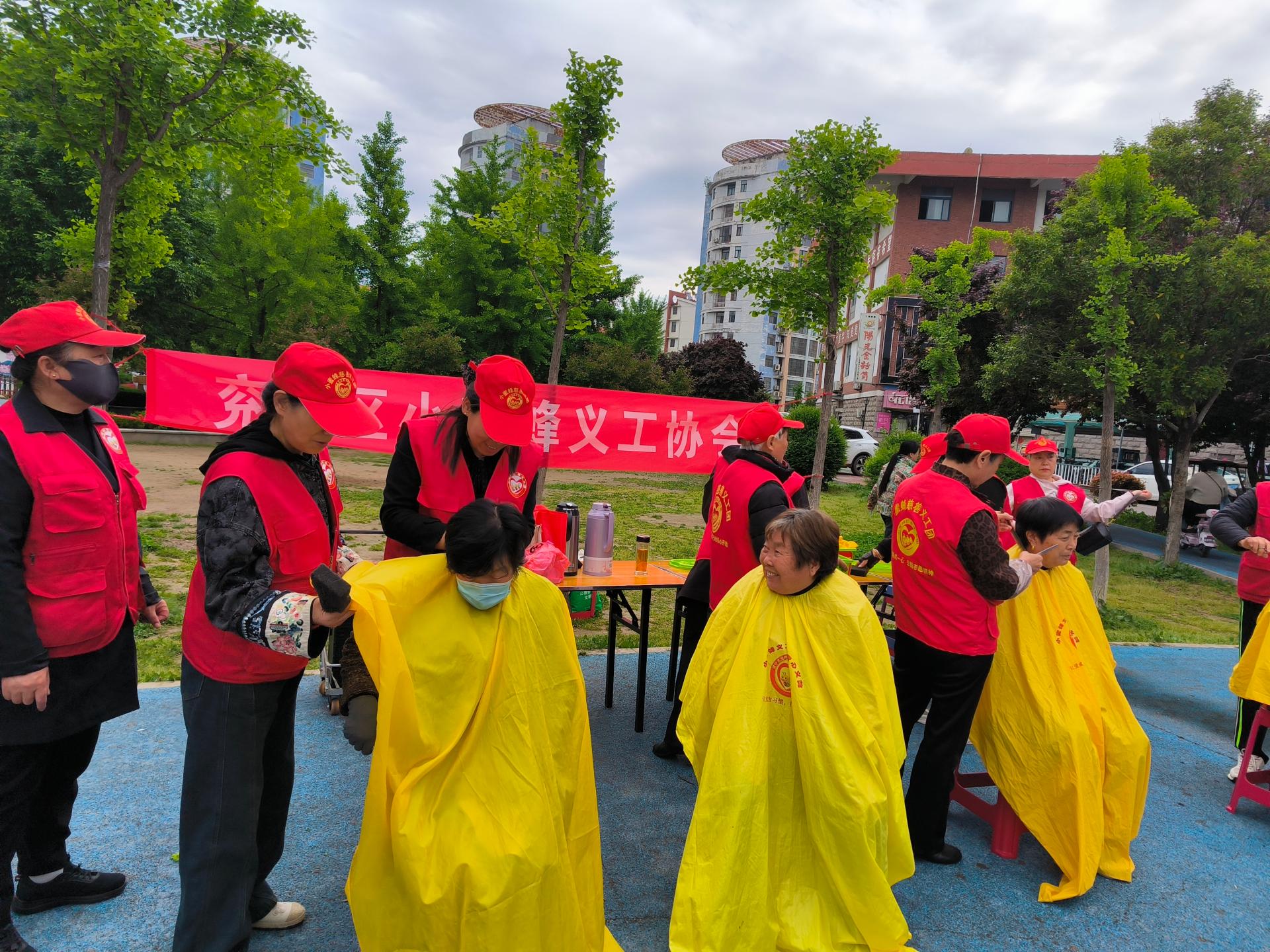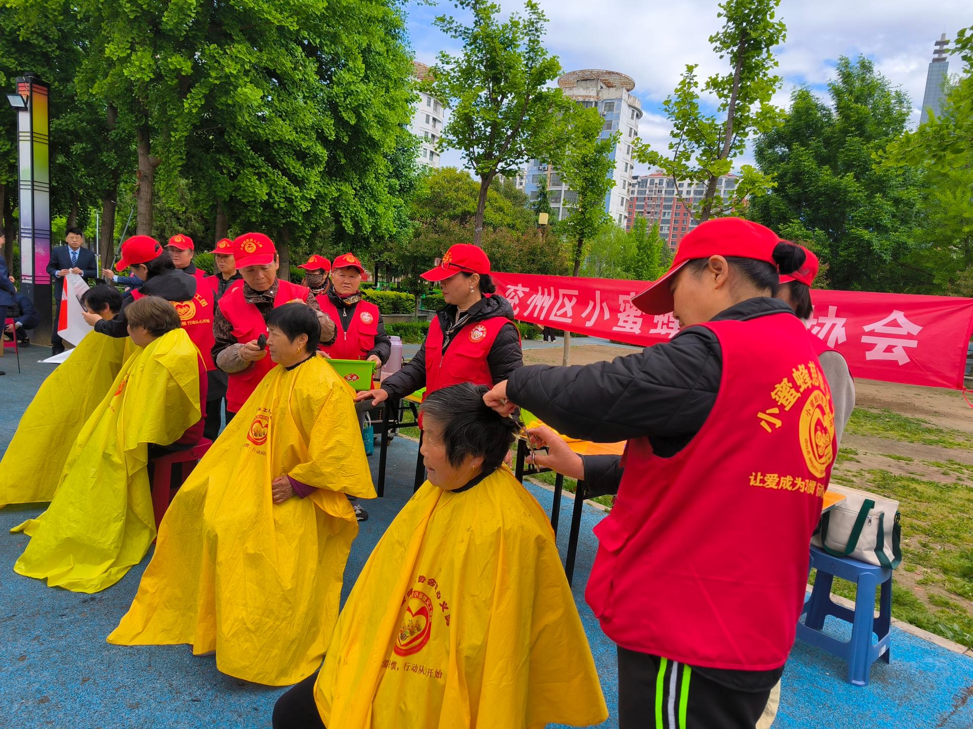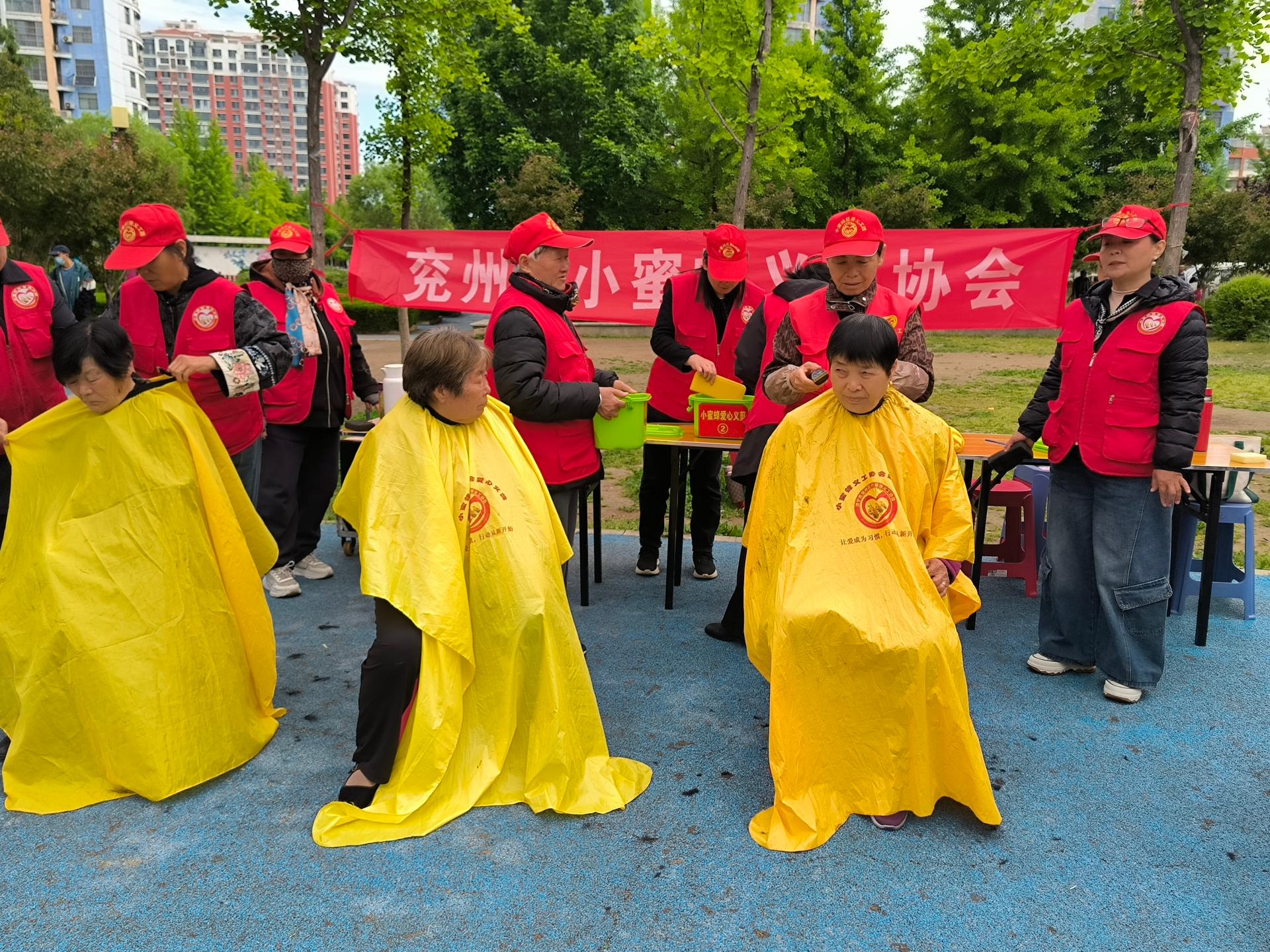 济宁市兖州区小蜜蜂义工协会走进济宁市兖州区九州方园社区义剪义演活功,为60岁老人,儿童,残疾人,退伍军人免费爱心义剪。