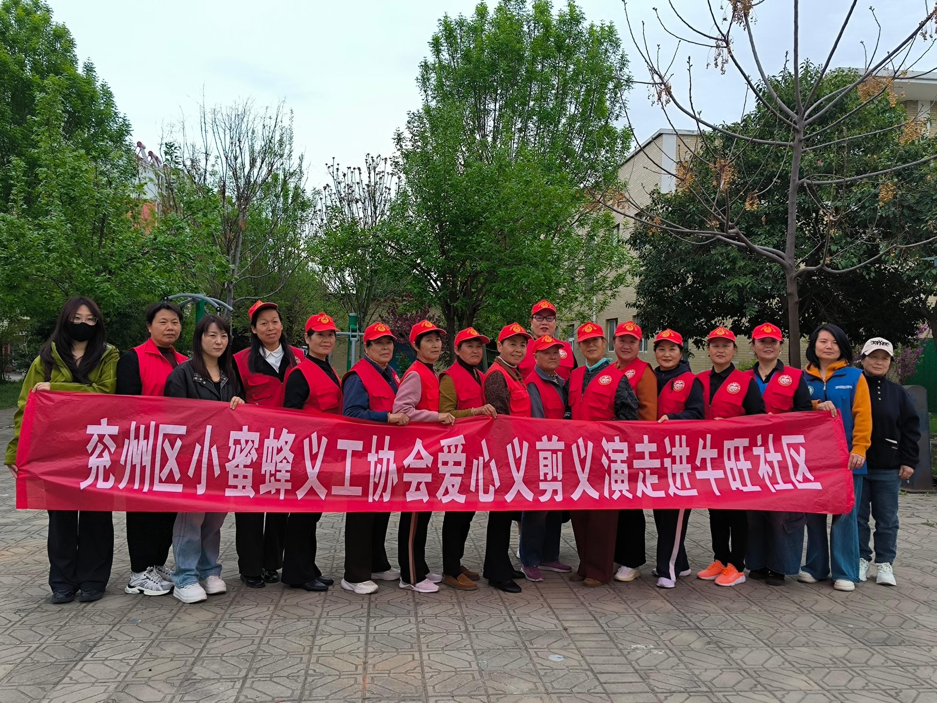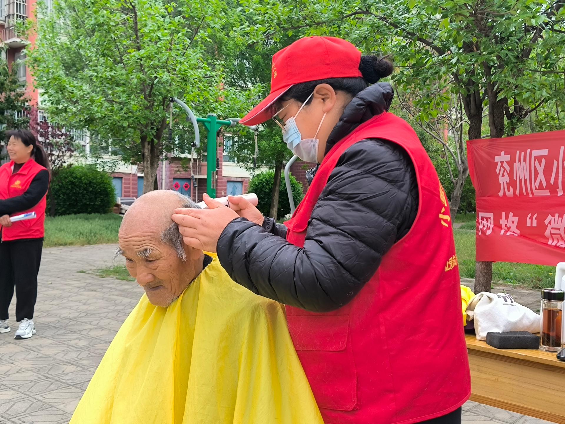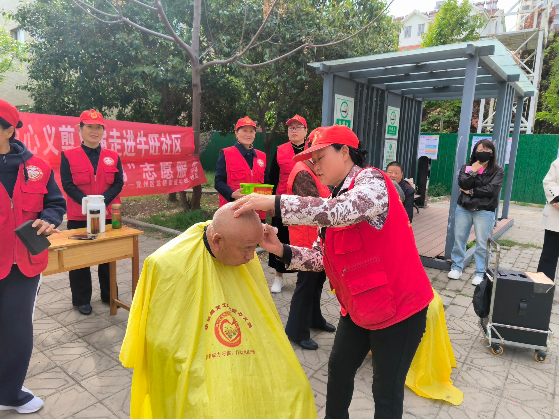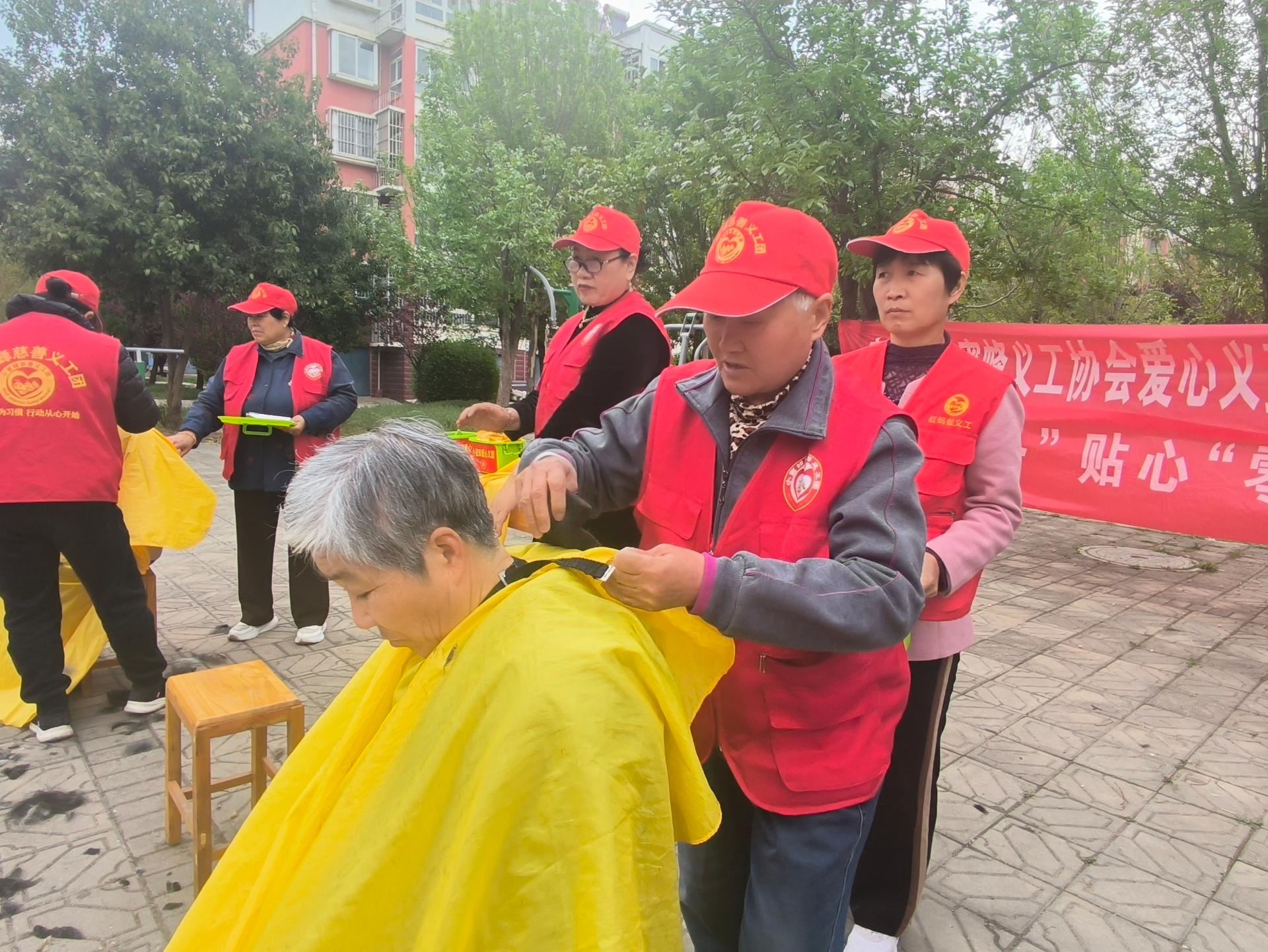兖州区小蜜蜂义工协会在牛旺社区义剪义演活动,为60岁以上老人,复员军人,困难妇女和特殊儿童免费理发,入户上门服希等。