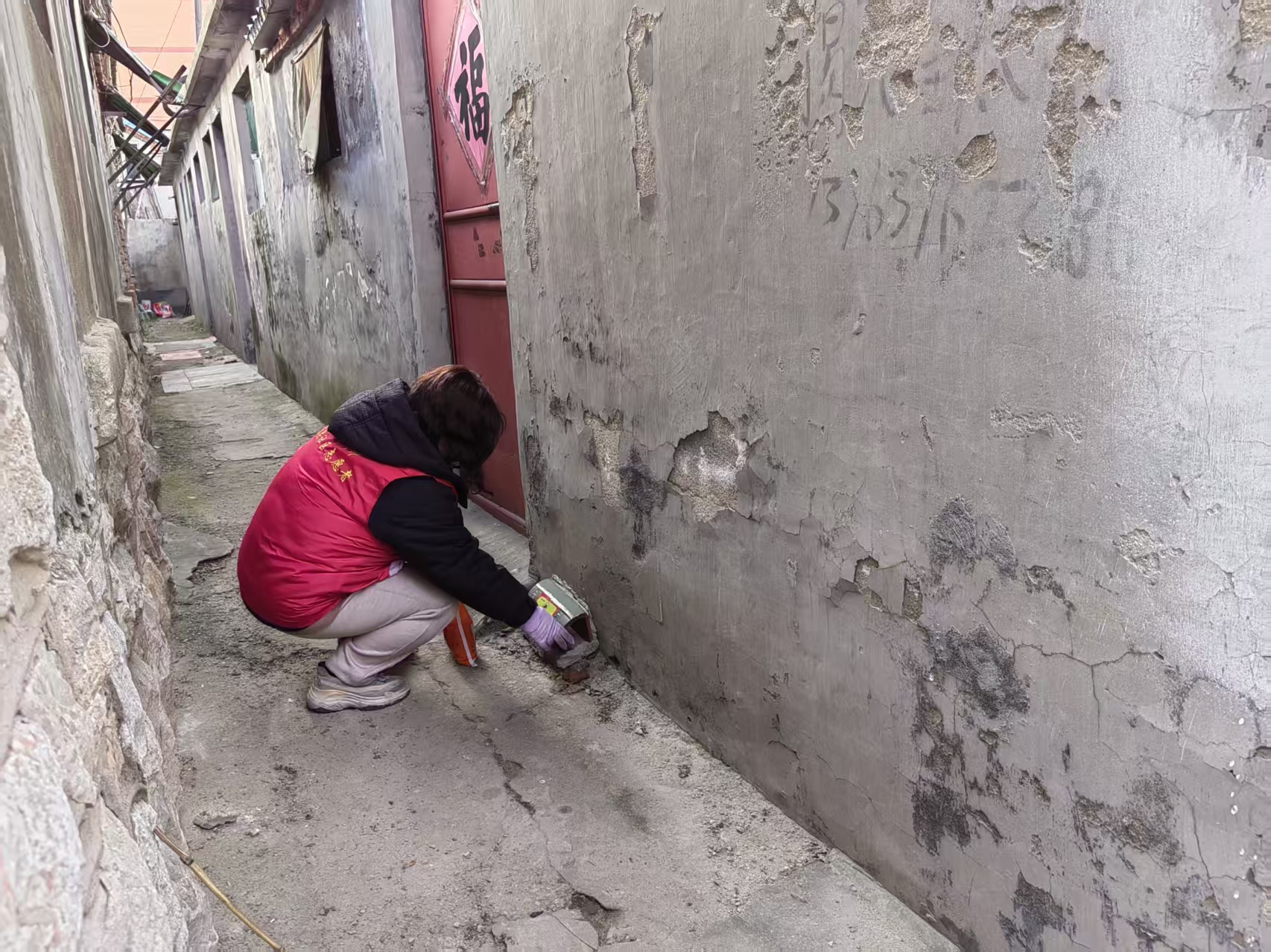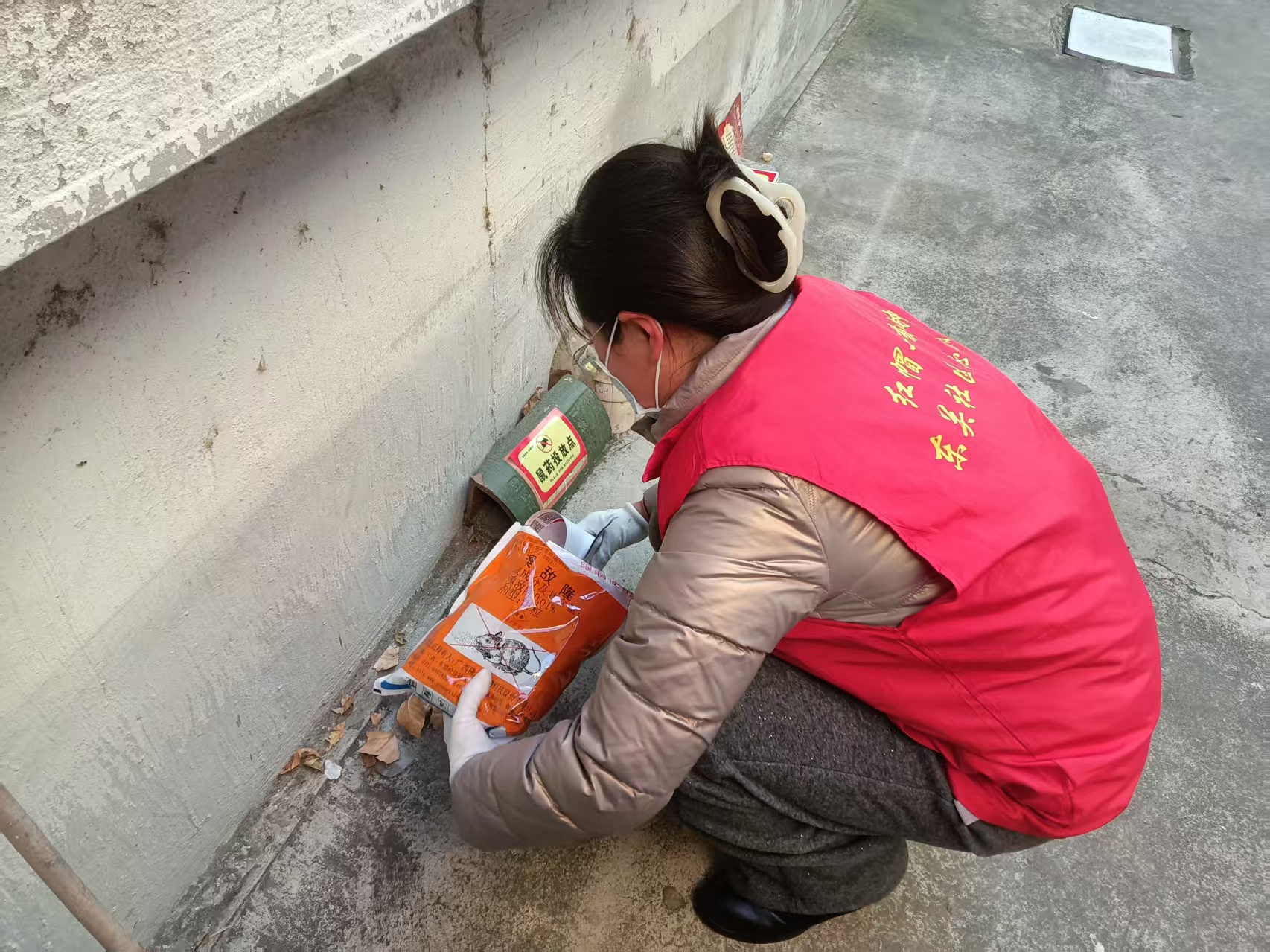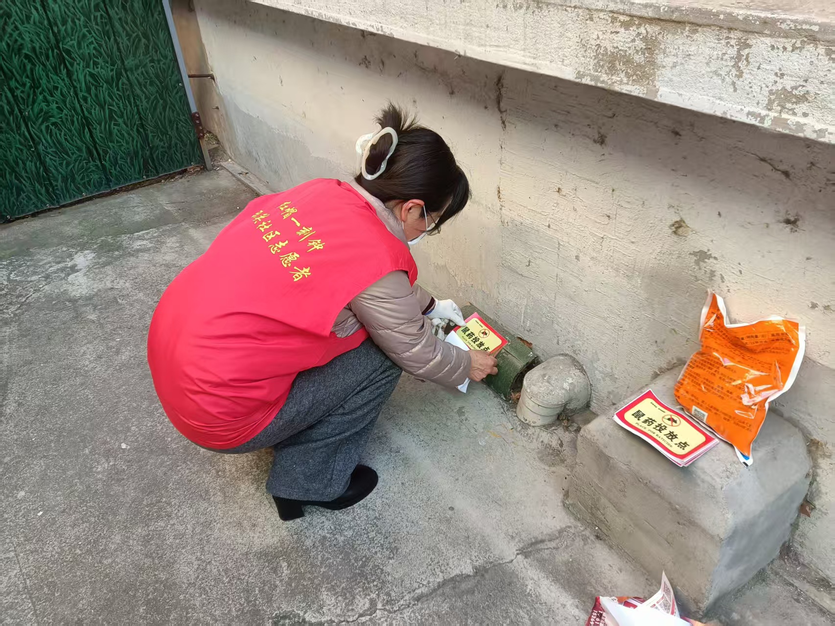 酒仙桥街道东关社区绿化带角落投放鼠饵活动