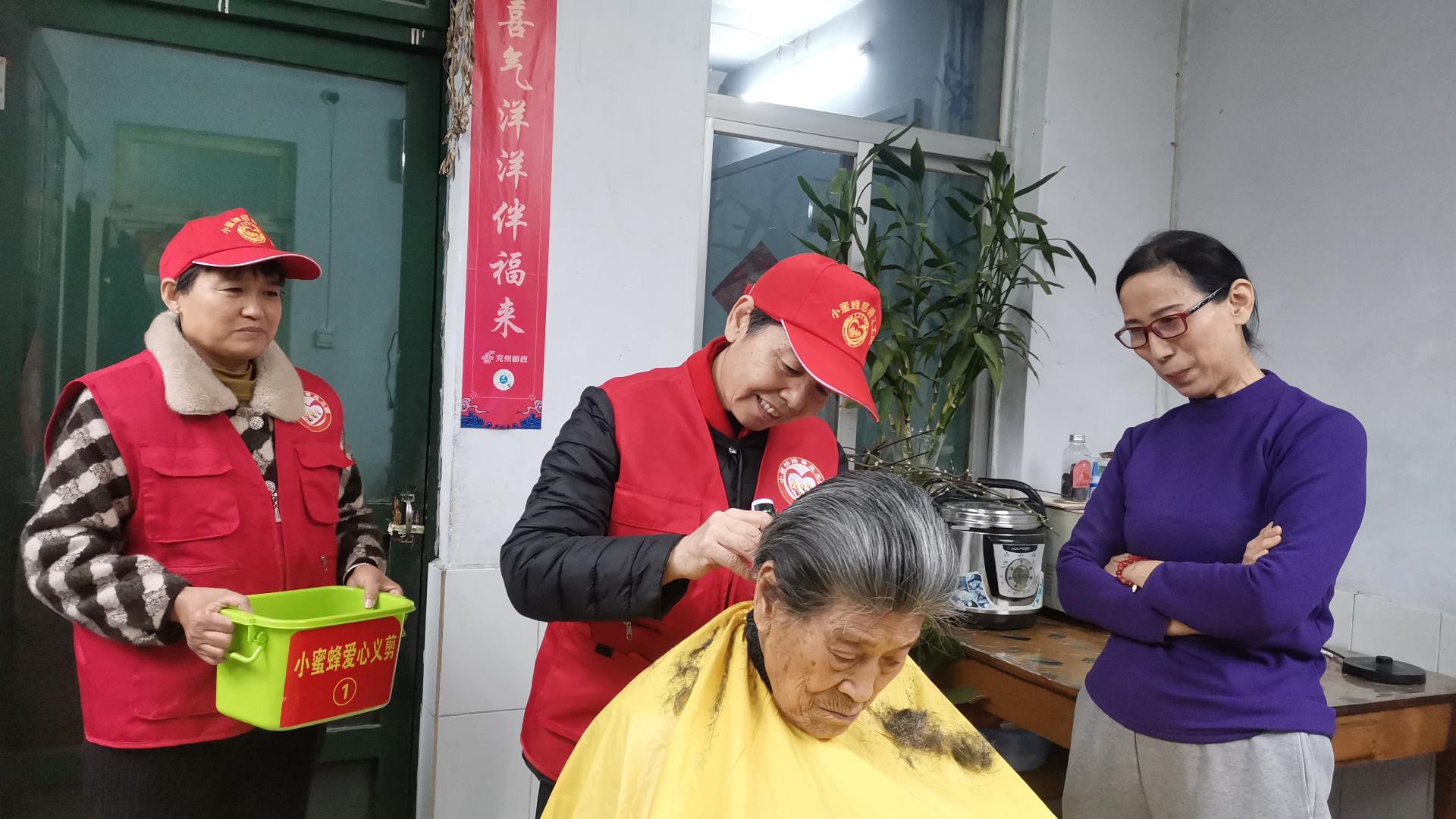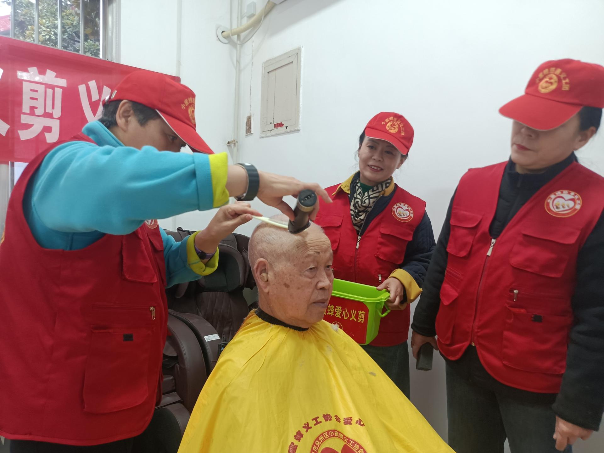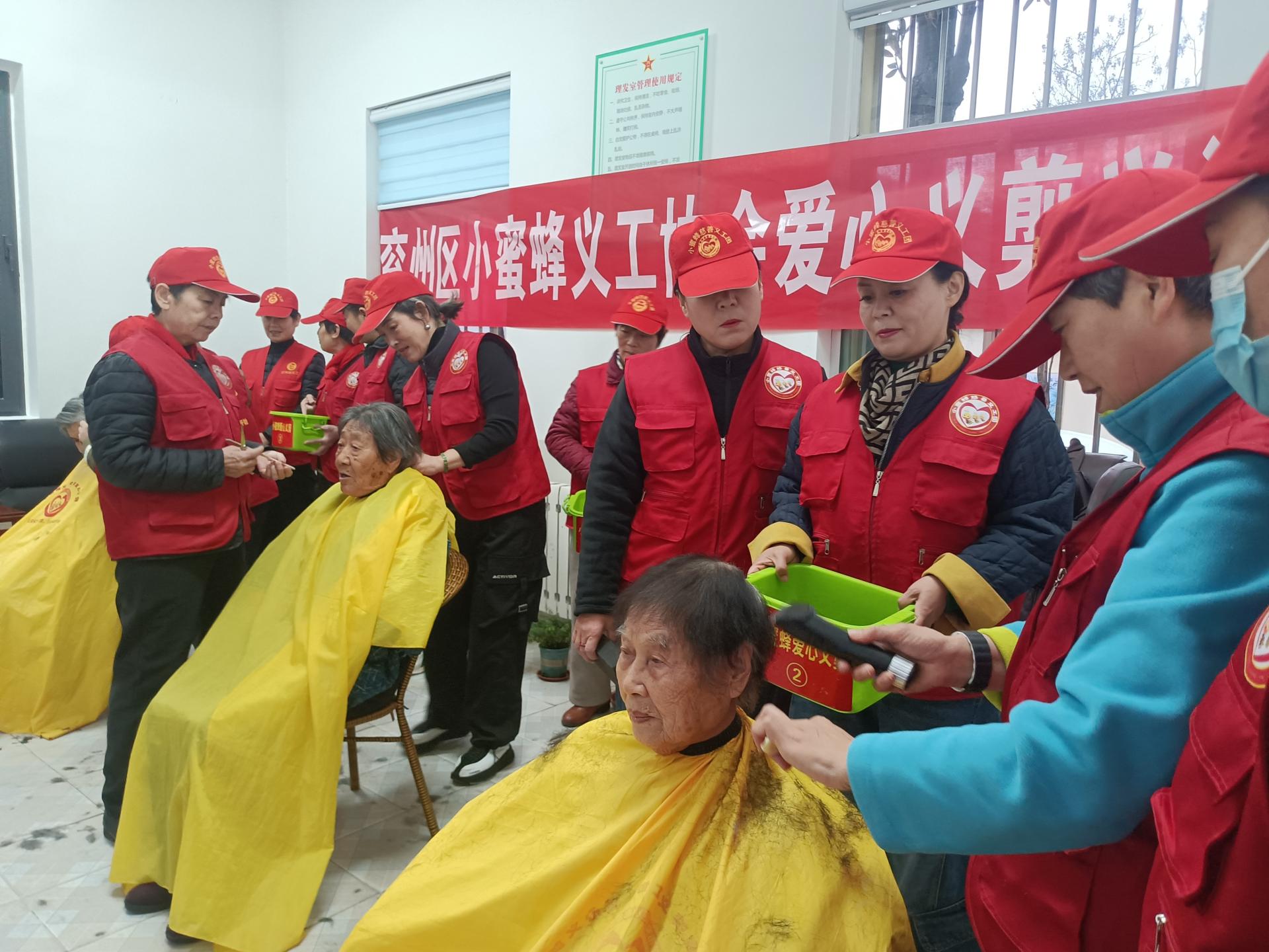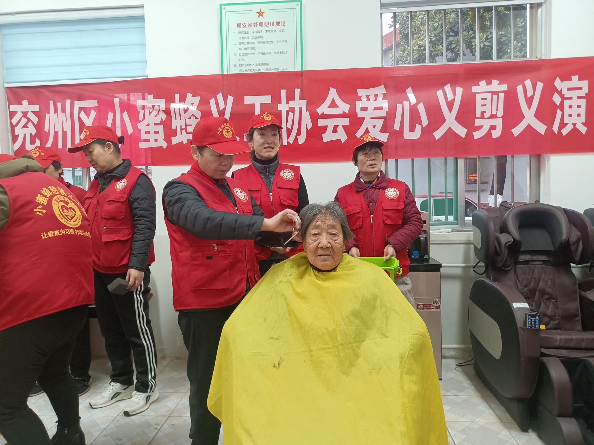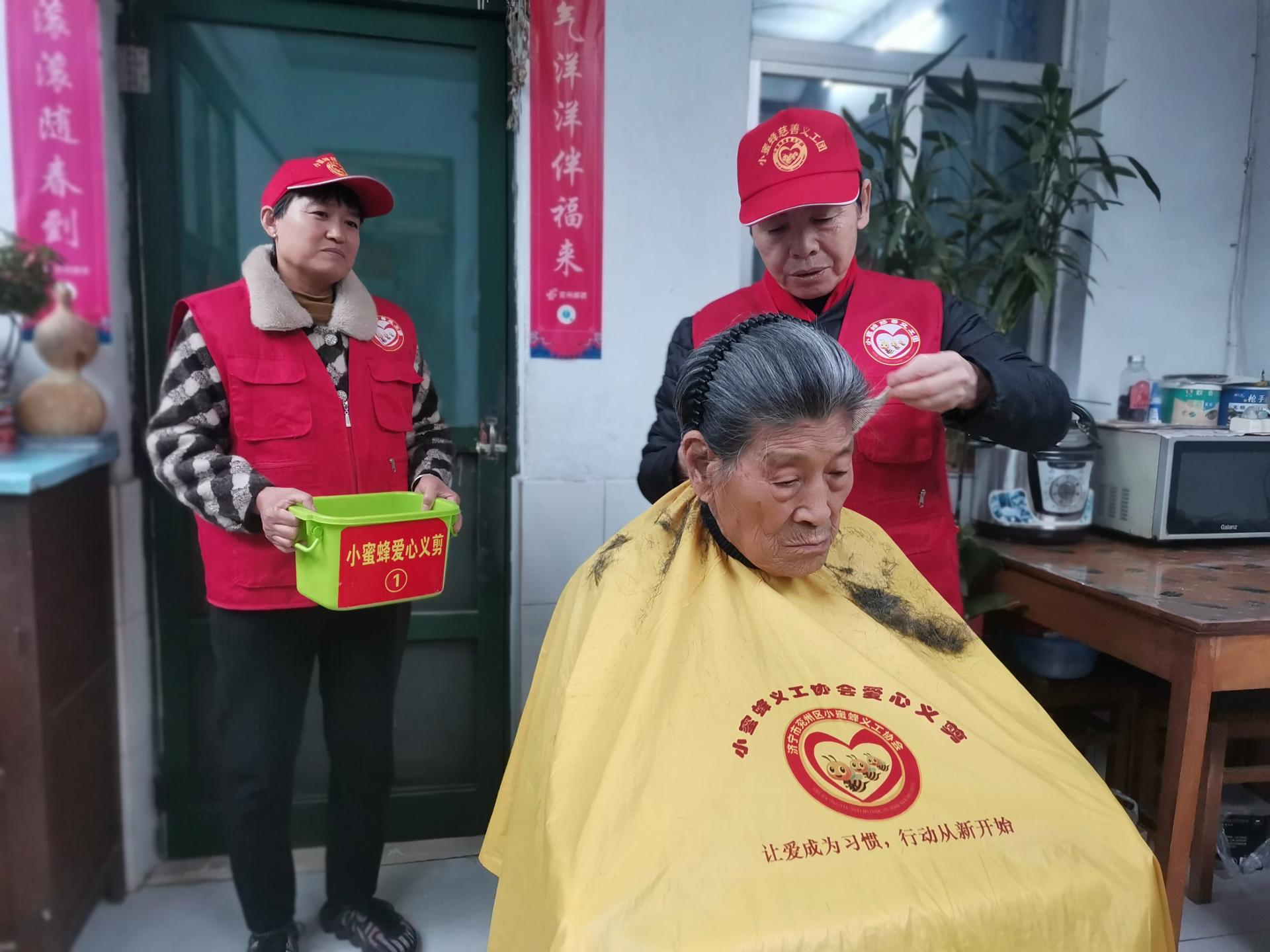 济宁市兖州区小蜜蜂义工协会积极开展拥军拥属活动,为兖州区第二干休所的老人免费理发,陪同聊天,修剪指甲,清理卫生等。